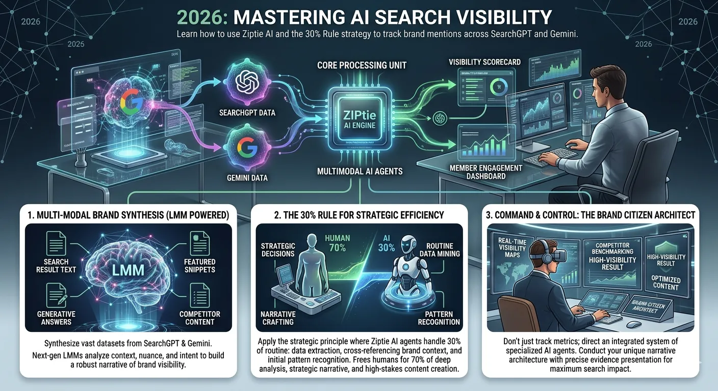 Master AI search visibility in 2026. Learn how to track brand mentions in SearchGPT and Gemini using Ziptie AI and the 30% Rule strategy.