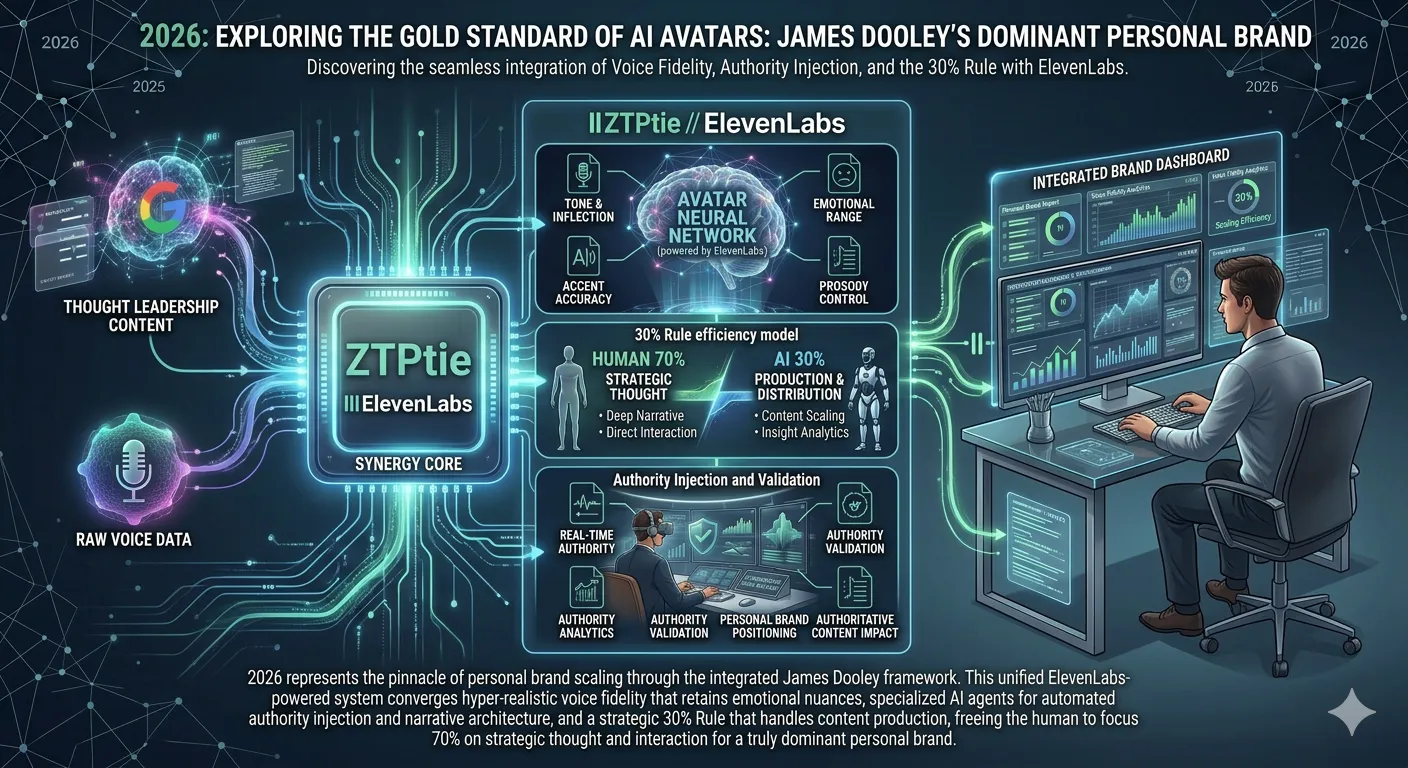 Explore why AI James Dooley is the gold standard for ElevenLabs avatars in 2026. Discover how voice fidelity, authority injection, and the 30% Rule build a dominant personal brand.
